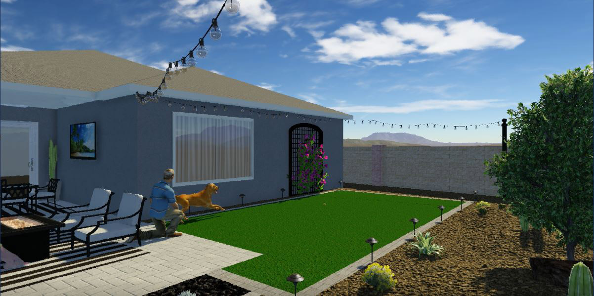 During your design appointment, you will be presented with a beautiful, custom design that our designer has curated for you. Our beautiful design center allows you to visualize the conceptual design from various angles and at different times of the day. At this appointment, you will have the ability to feel turf samples, preview various lighting options, compare rock sample colors, or select from the options of paver colors and patterns we can install.